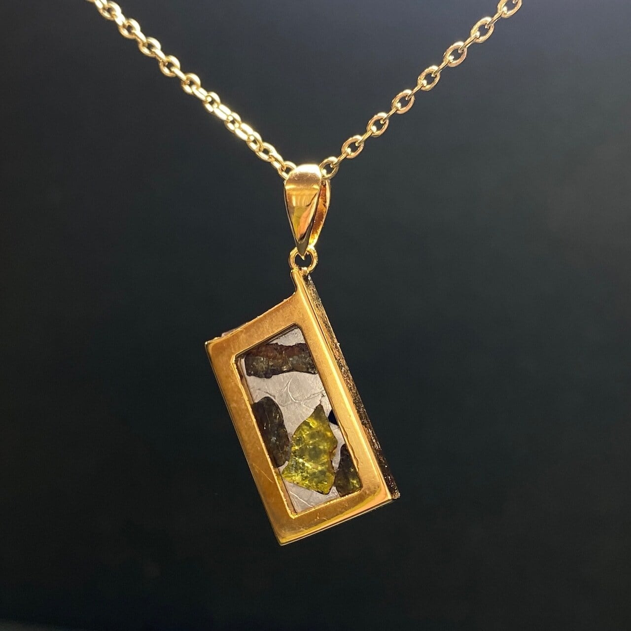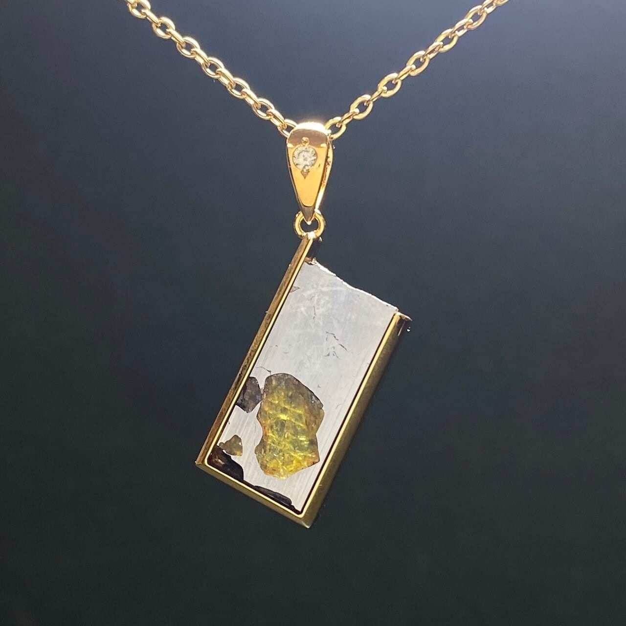 1822年にチリで発見された隕石です。パラサイト隕石自体の回収量は全体の約1%で希少なのですが、イミラックはその中でも希少かつ人気の隕石です。そのカンラン石は大きく、透明度が高いです。イエローグリーンに輝くその様は、宇宙の宝石と呼ばれるほどです。サビにくさも人気の1つです。美しいそのフォルムを美しいまま、いつまでの楽しめる隕石です。